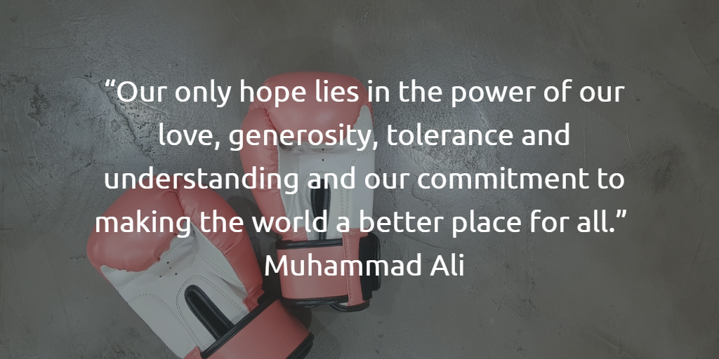 Muhammad Ali (1942-2016) was an Olympic Gold medalist and heavyweight boxing champion. A convert to Islam, he was outspoken on issues of race, religion, and politics. He spent the years following his diagnosis with Parkinson’s disease traveling the world on humanitarian missions. In 2002, he traveled to Afghanistan as a United Nations Messenger of Peace.[6]